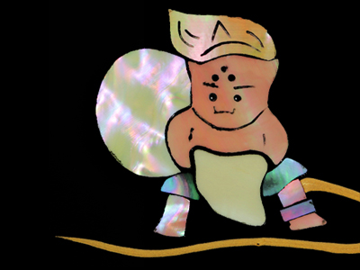 "Obon" Serving Tray God of Wind in Mother-of-Pearl (Maru Bon Fujin) "Obon" Serving Tray / God of Wind in Mother-of-Pearl is...